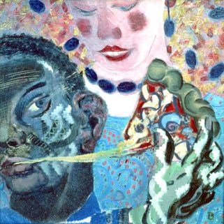 These are early student works, or works made in the latter part of the last century. Many are portraits of friends or of the artist's family. Subsequently the artist trained as a mental health nurse, then a psychotherapist, working for many years in therapeutic communities.